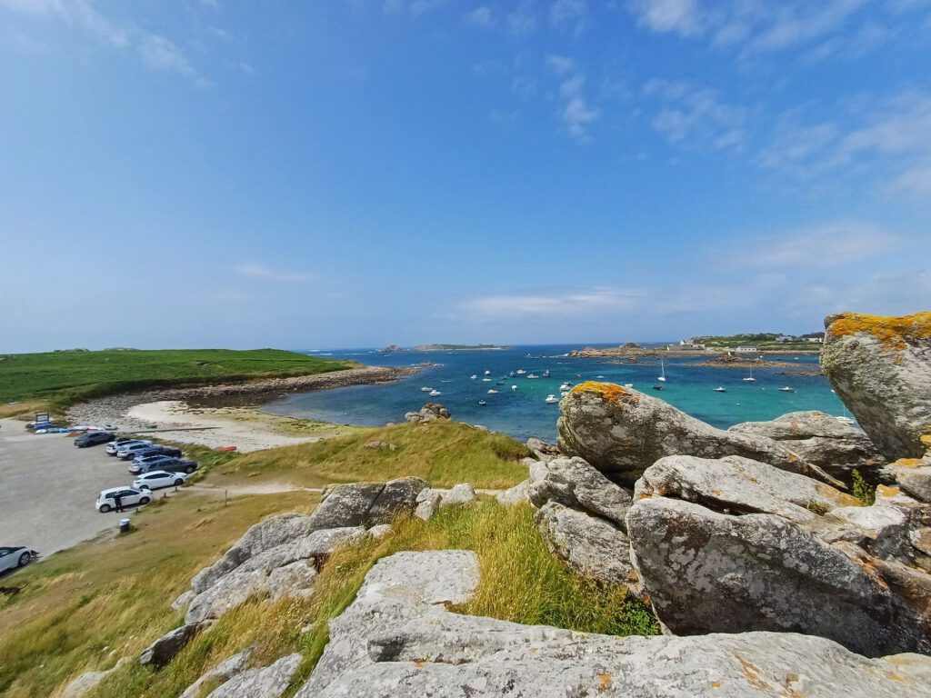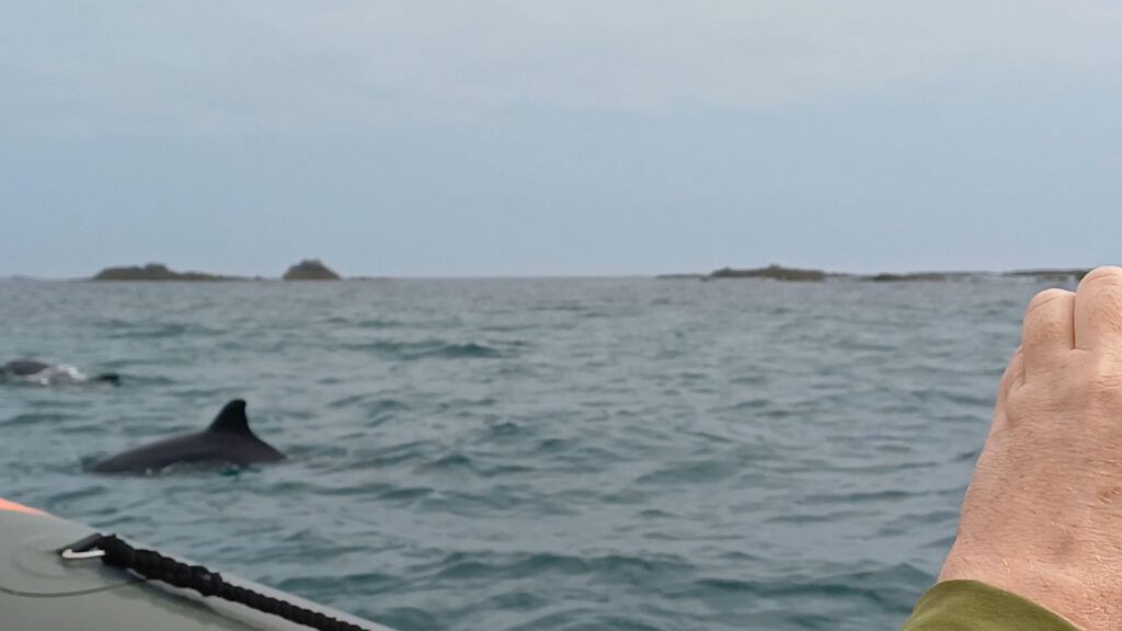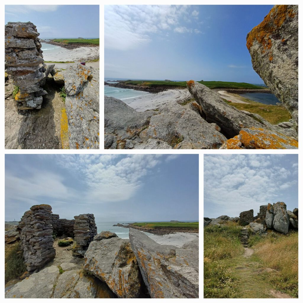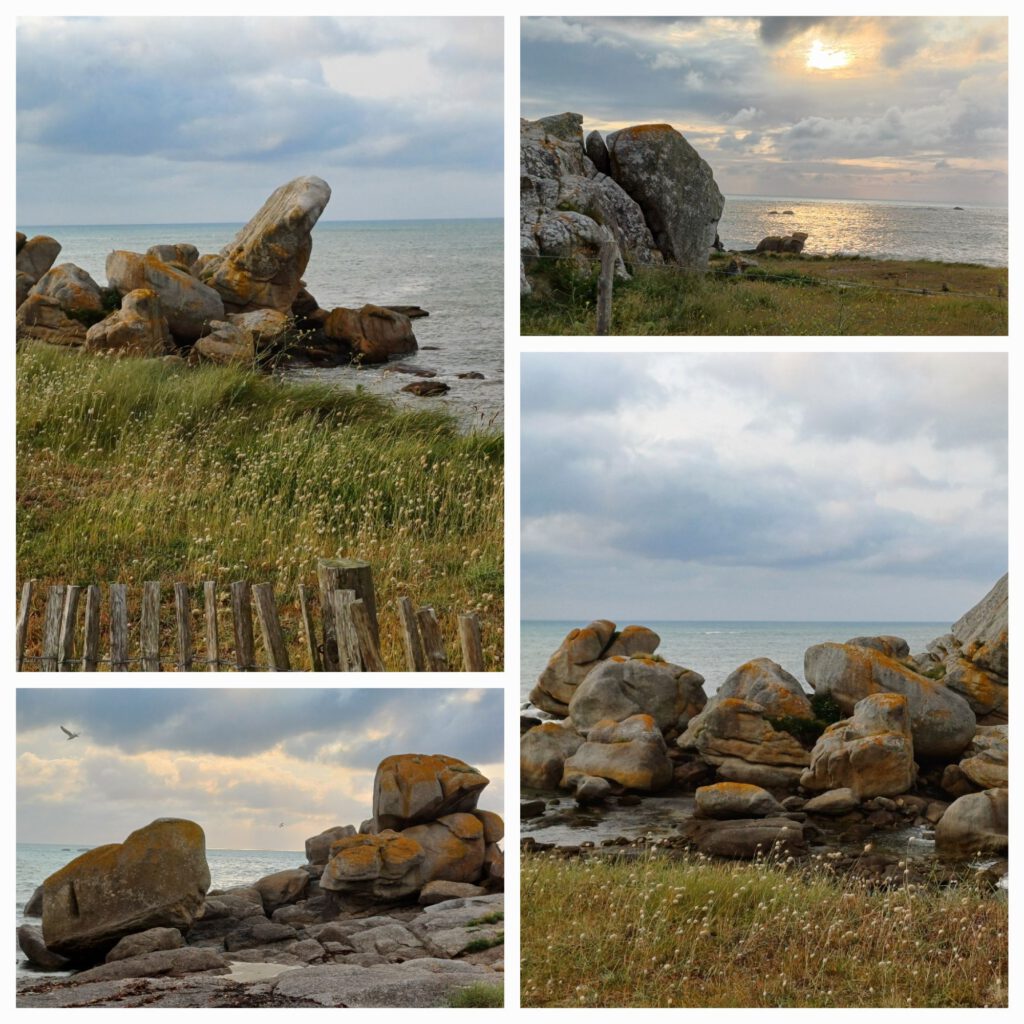 Trotz abdunkeln aller Scheiben und Thermoabdeckung auf der Windschutzscheibe hat sich der Yoggi ziemlich aufgeheizt. Also habe ich nur schnell die Wanderstiefel angezogen und bin auf etwas geänderter Route wieder losgezogen. Das Cap d’Erquy ist auch sehr schön. Leider war zwischenzeitlich sehr heiß und viel mehr Leute unterwegs, aber es war trotzdem schön. Auf halber Strecke habe ich ganz vorne auf der Landspitze eine kleine Pause gemacht und etwas gegessen.