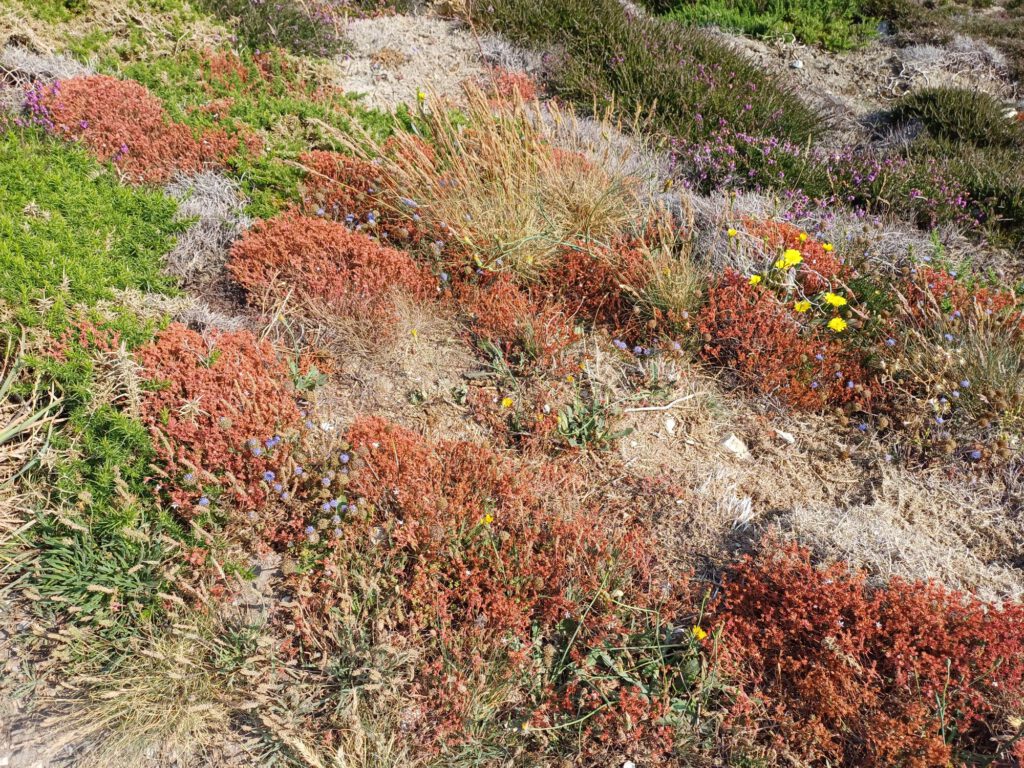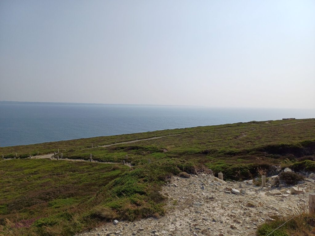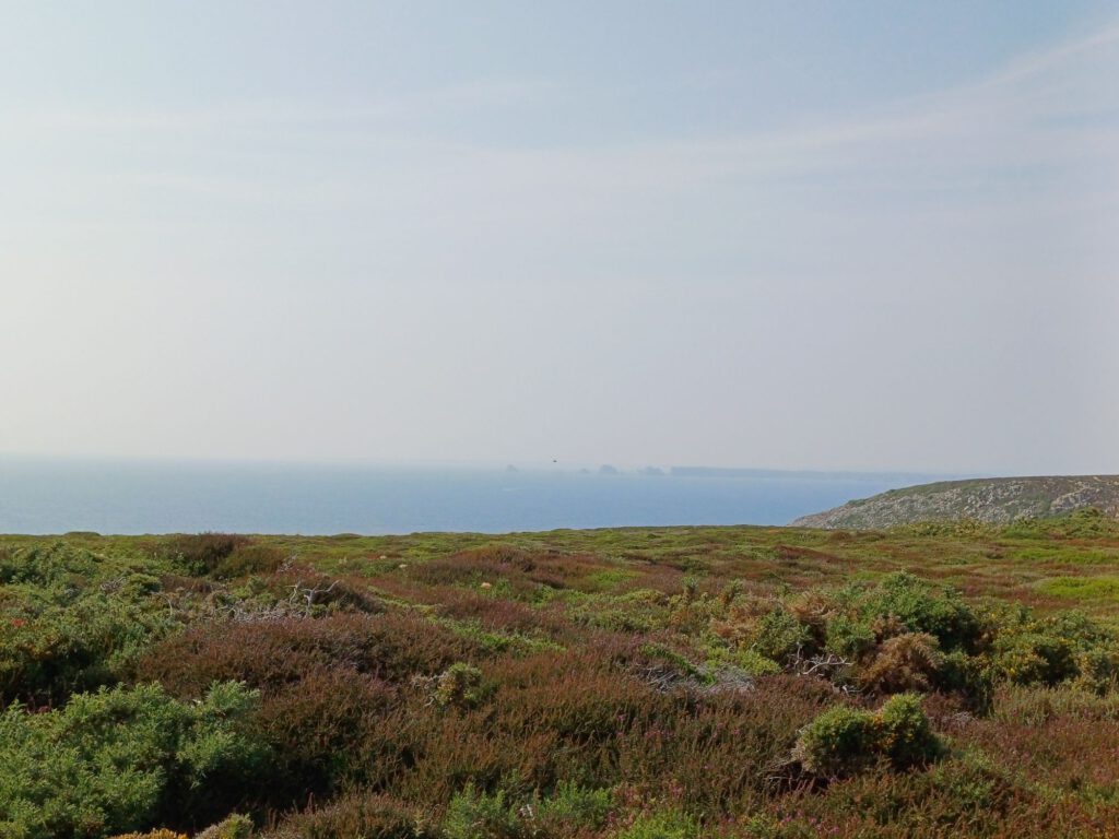 Und ganz viel Natur und Aussicht, denn das Cap de la Chèvre liegt im Naturpark Amorique und ist mit seinen über 100m hohen Klippen das höchste auf der Crozon-Halbinsel. Leider war heute ziemlich diesig. Ansonsten hat man eine grandiose Sicht auf die Bucht von Douarnenez, Pointe du Raz, das Cap Sizun und Pointe de Dinan. Aber vielleicht sieht man ja morgen früh mehr, denn hier werde ich übernachten.