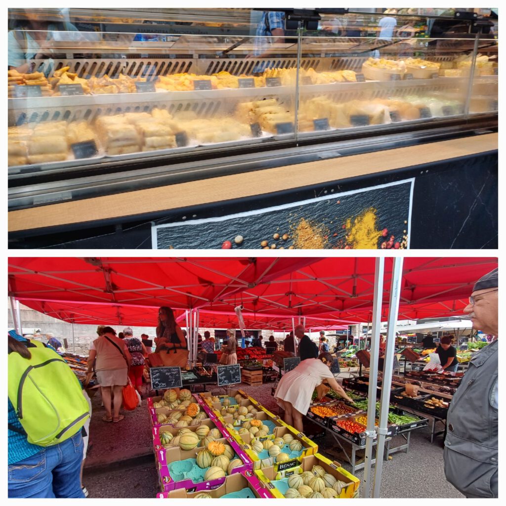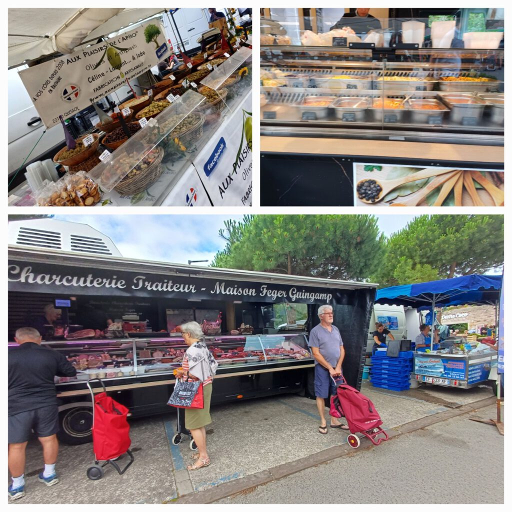 Auf dem Markt von Erquy haben wir uns vom Abschiedsschmerz abgelenkt. Obwohl Erquy ein vergleichsweise kleines Städtchen ist, war der Markt gar nicht so klein. Da gab es wieder allerhand zu bestaunen und das Angebot war sehr bunt.