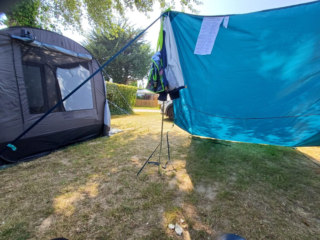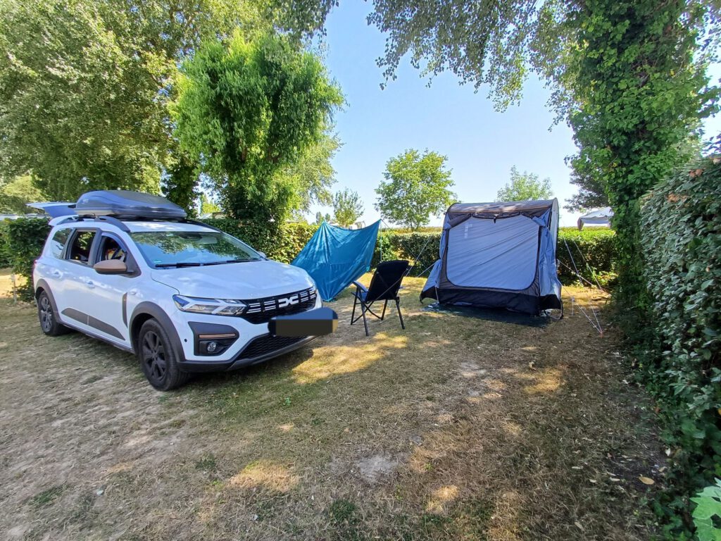 Nach dieser kurzen aber schweißtreibenden Wanderung sind wir nach Damgan zu unserem Campingplatz gefahren. Der Empfang war sehr herzlich und die Dame am Empfang hatte uns den besten der noch freien Plätze ausgesucht. Wir durften uns zwar alle ansehen und hätten auch einen anderen freien Platz nehmen können, aber ein kurzer Besichtigungs-Rundgang bestätigte, dass es wirklich der beste war. Die Plätze sind alle sehr ordentlich und eben, so dass man keine Unterfahrkeile benötigt. Auch die Sanitäranlagen sind zwar etwas in die Jahre gekommen, aber gepflegt und sauber. Lediglich der „direkte“ Strandzugang war etwas enttäuschend. Der Weg war etwas länger als gedacht und der Strand nicht sehr einladend,weil es hier sehr viele Algen gibt. Dazu Unmengen an pazifischen Austern (invasive Art) und man badet mehr oder weniger zwischen den Sportbooten. Das sieht zwar sehr hübsch aus, aber fühlt sich nicht so gut an, wie an den Stränden, an denen wir bisher waren. Daher zogen wir dann das Wasser der Dusche am späteren Abend, nachdem Zelt und Tarp aufgebaut und das ganze Gepäck im Zelt verstaut waren, vor. Das zweite Auto hatten wir auf einem Parkplatz nahe des Campingplatzes abgestellt. Zum Glück kann man hier ja fast überall kostenlose Parkplätze finden. Ich habe es genossen, mal wieder „richtig“ kochen zu können und heute kam auch die Omnia (eine Art „Backofen“ für den Gaskocher) zum Einsatz. Es gab Gemüse mit Schafskäse im Blätterteig.