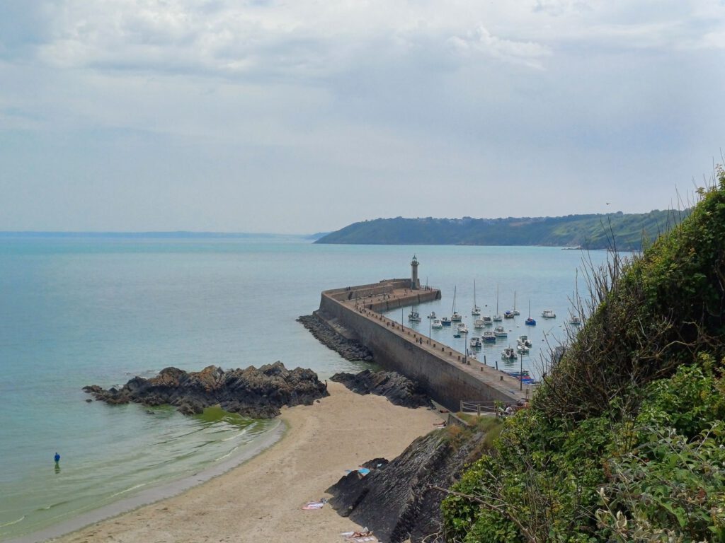 La Sainte-Jeanne – Boot für traditionelle SegelausflügePhare d’ErquyFischereihafenBlick vom Hafen auf Erquy