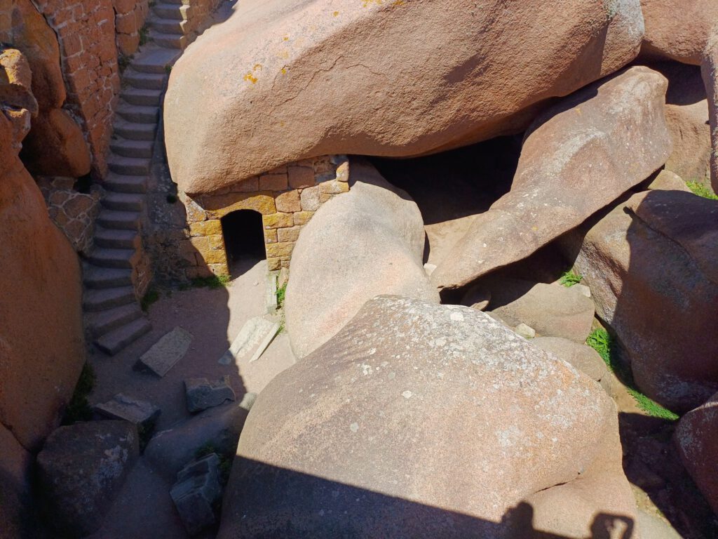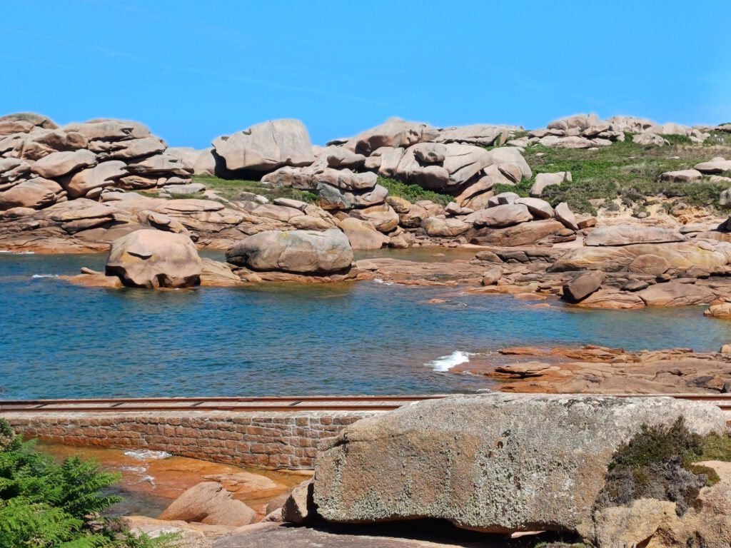Heute sind wir bei Plougrescant an die Küste gefahren. Dort gibt es imposante rote Granitfelsen zu bewundern. Ein besonders schönes Motiv bietet das von zwei riesigen Granitfelsen eingefasste Maison du Gouffre Plougrescant.