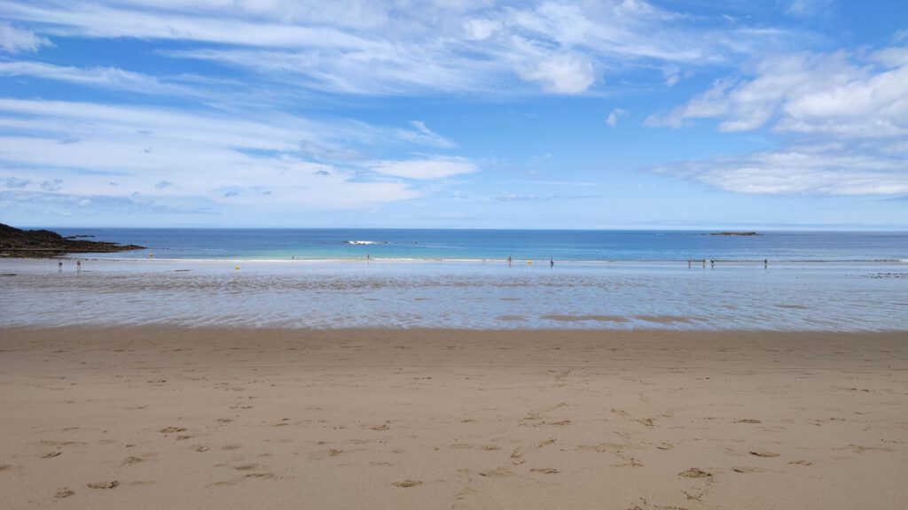 Gestern haben wir es wieder ruhiger angehen lassen. Ich habe den Innenraum des Yoggis und ein paar Reiseutensilien etwas geputzt und danach sind wir nach Erquy zum Eisessen gefahren. Auf dem Weg zurück zum Parkplatz haben wir einen Schlenker über einen der dortigen Strände gemacht.