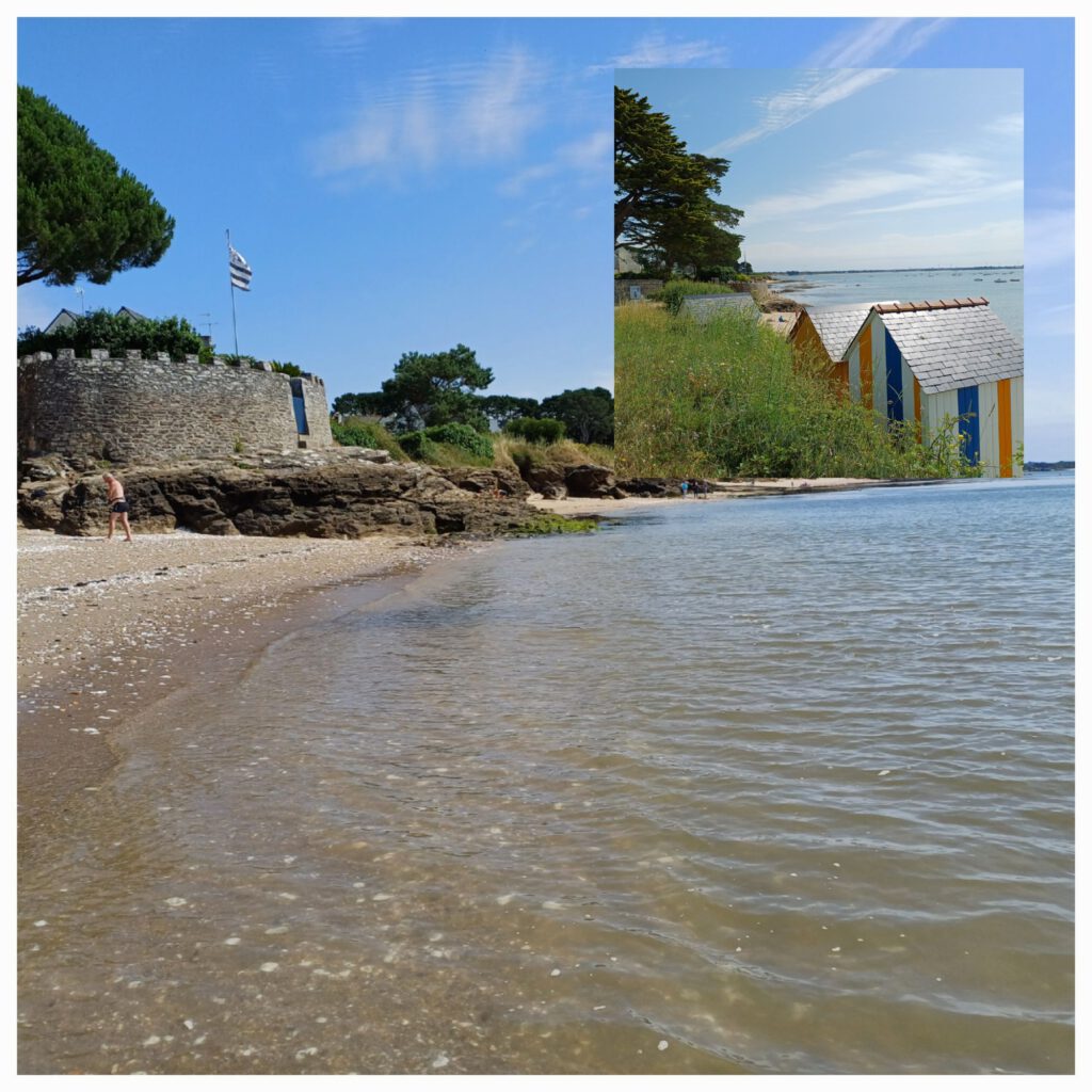 Ich habe mir nach dem Checkout noch die kleine Kapelle von Kervoyal (Teil von Damgan) angesehen und bin ein letztes Mal am Strand durchs Meer gewatet. Bei Flut sah der Strand deutlich hübscher aus, als bei Ebbe.