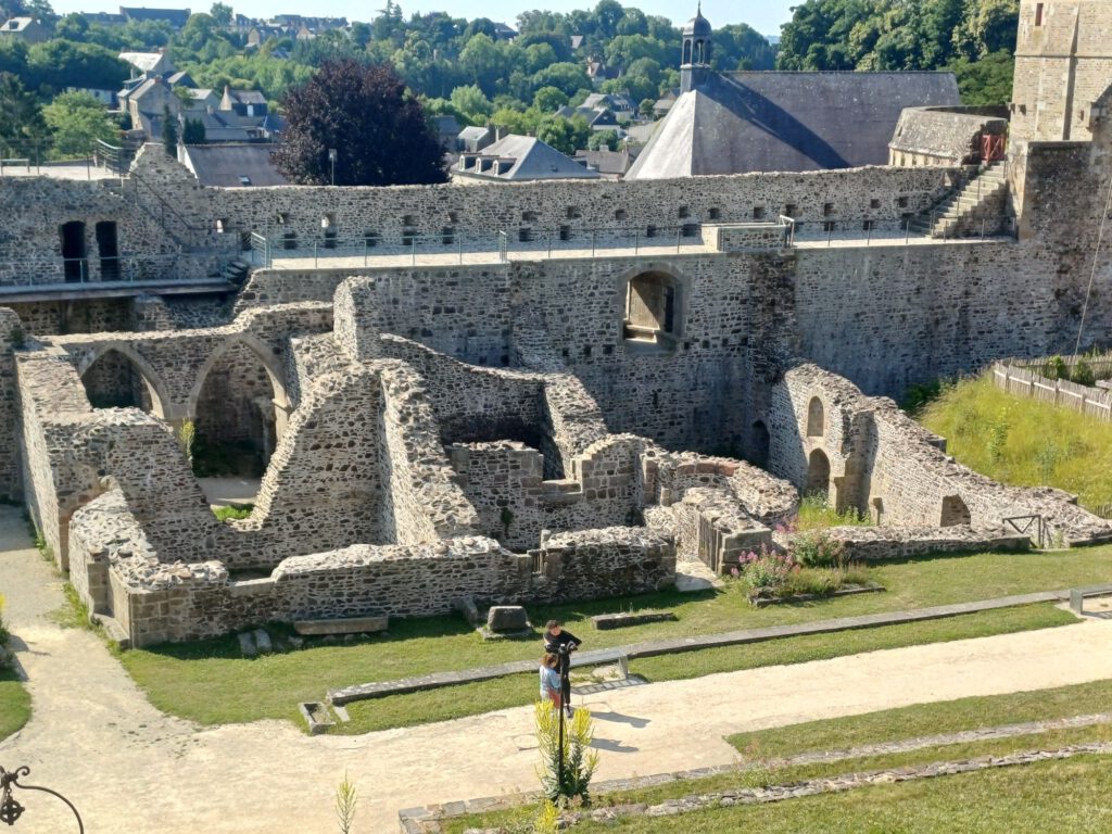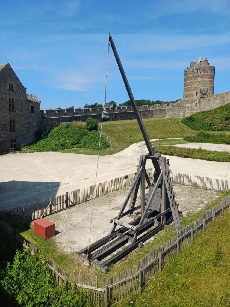 Das Château ist wirklich beeindruckend und bereits im ersten Vorhof war für mich klar: der weite Weg hat sich gelohnt. Immerhin war ich gestern fast 200km angereist. Das Château ist eng mit der lokalen, bretonischen und europäischen Geschichte verbunden. Und über all das erfährt man im Rahmen der Besichtigung dank eines Audioguides, den es sogar in Deutsch gibt, sehr viel. Im Laufe ihres rund 1000-jährigen Bestehens hat sie viele architektonische Veränderungen durchgemacht, in die vor allem auch militärische Erkenntnisse einflossen. So sind z. B. Die neueren Wehrtürme nicht mehr viereckig und flach in die Wehrmauer integriert, sondern oval oder rund und ragen über die Wehrmauer hinaus. Somit konnte man aus ihnen in alle Richtungen auf Angreifer schießen und sie waren bei Beschuss mit Katapulten oder Kanonen nicht so anfällig.