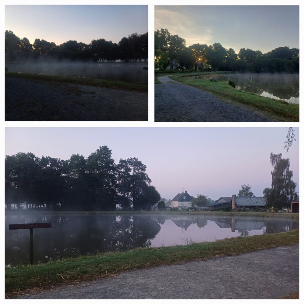 Heute war ich wieder sehr früh wach. Das hat mir immerhin gemütliches Frühstücken, aufräumen und einen Sonnenaufgang über dem Teich beschert.