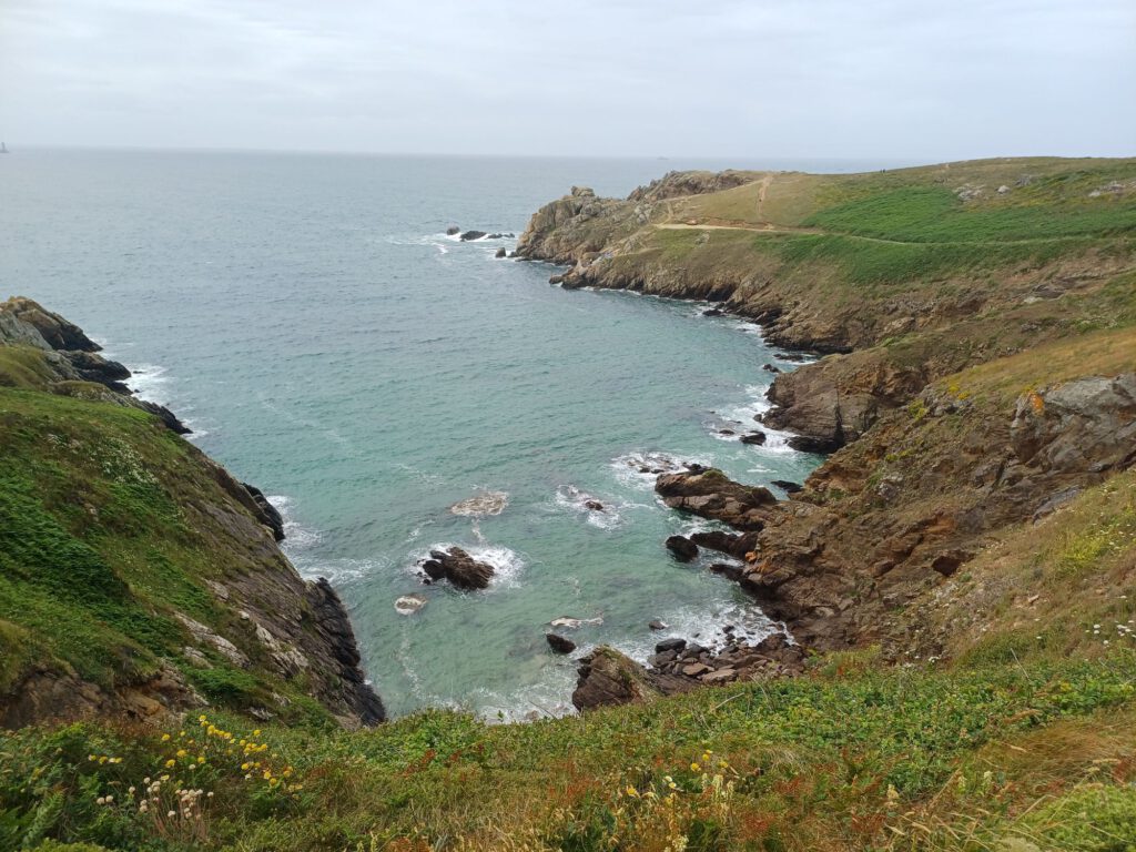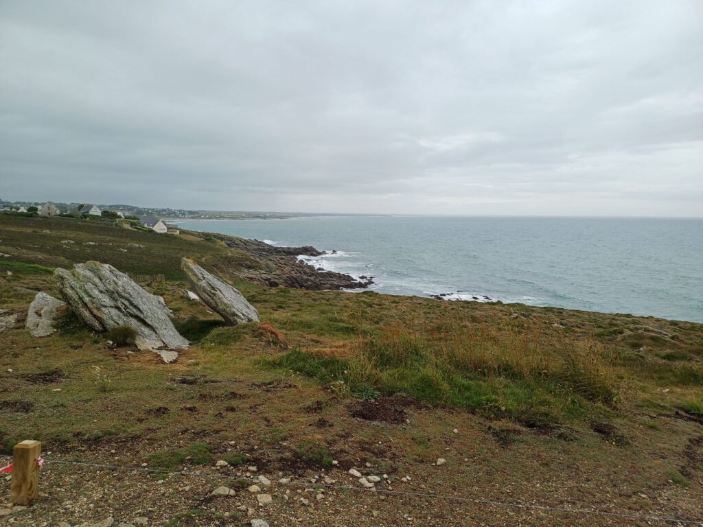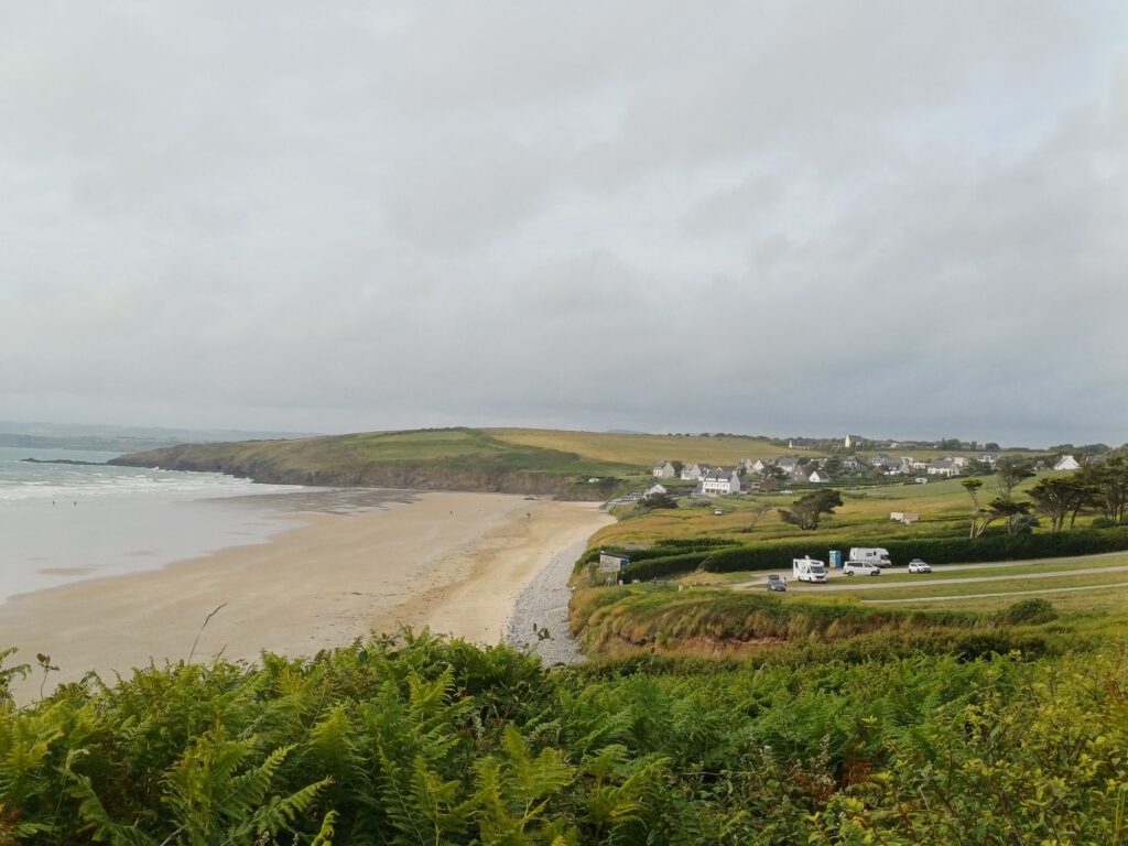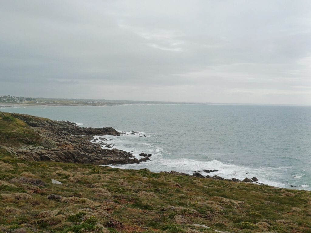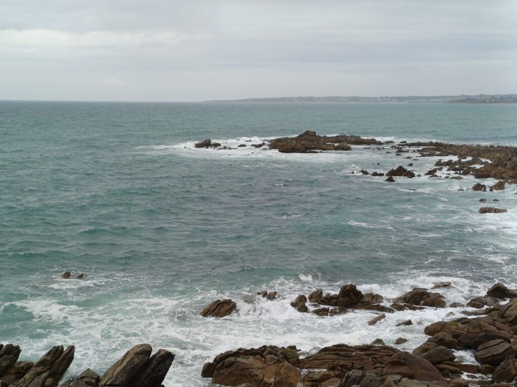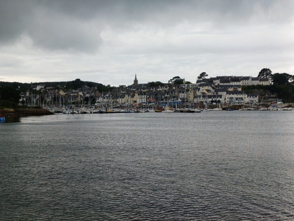 Nach einer relativ kurzen Nacht, bin ich um halb sieben aufgestanden. Ich habe mein geräumiges und sauberes „Badezimmer“ am Parkplatz genossen und dann mit der aufgehenden Sonne einen Spaziergang durchs Dorf gemacht. Zum Frühstück bin ich zu einem Picknickplatz auf halber Strecke nach Paimpol gefahren. Mittlerweile war es leider ziemlich zugezogen und entsprechend kühl. Als ich fertig und gerade dabei war, heißes Wasser für den Abwasch zu richten, kam ein Bauer mit seinem Traktor aufs benachbarte Feld gefahren. Er wirkte besorgt und fragte, ob ich mit Frühstück gerade anfange oder schon fertig sei. Als ich sagte, ich sei fertig, war er etwas erleichtert, er wollte nämlich Gülle fahren und das wäre beim Frühstück ja doch sehr unangenehm. Ich sagte, das sei kein Problem. Er hat dann trotzdem gewartet bis ich fast alles im Auto verstaut hatte und in der entferntesten Ecke des Feldes begonnen. Die Menschen sind hier wirklich so nett und hilfsbereit. Später am Tag hatte ich ein ähnliches Erlebnis mit dem Mitarbeiter der Kirche in Paimpol, der ruhig gewartet hat mit abschließen, bis ich meine Meditation beendet und noch ein paar Fotos gemacht hatte. Erst dann ist mir aufgefallen, dass er da wohl schon die ganze Zeit mit Motorradhelm auf dem Kopf gewartet hat. Als ich mich schuldbewusst rausgeschlichen habe, hat er mich freundlich angelächelt und mir einen schönen Tag gewünscht. Ansonsten war mir Paimpol zu voll und zu hektisch. Denn heute war Markttag. Und was für ein Markt! Da gab es wirklich alles und er war groß. Das erklärte die Menschenmassen. Er erstreckte sich über sämtliche Plätze der Altstadt und die meisten Straßen. Leider war dadurch kaum etwas von den Häusern aus dem überwiegend 15. Und 16. Jahrhundert zu sehen. Daher bin ich irgendwann auch in die Kirche geflüchtet, um meinem überreizten Nervensystem Ruhe zu gönnen.