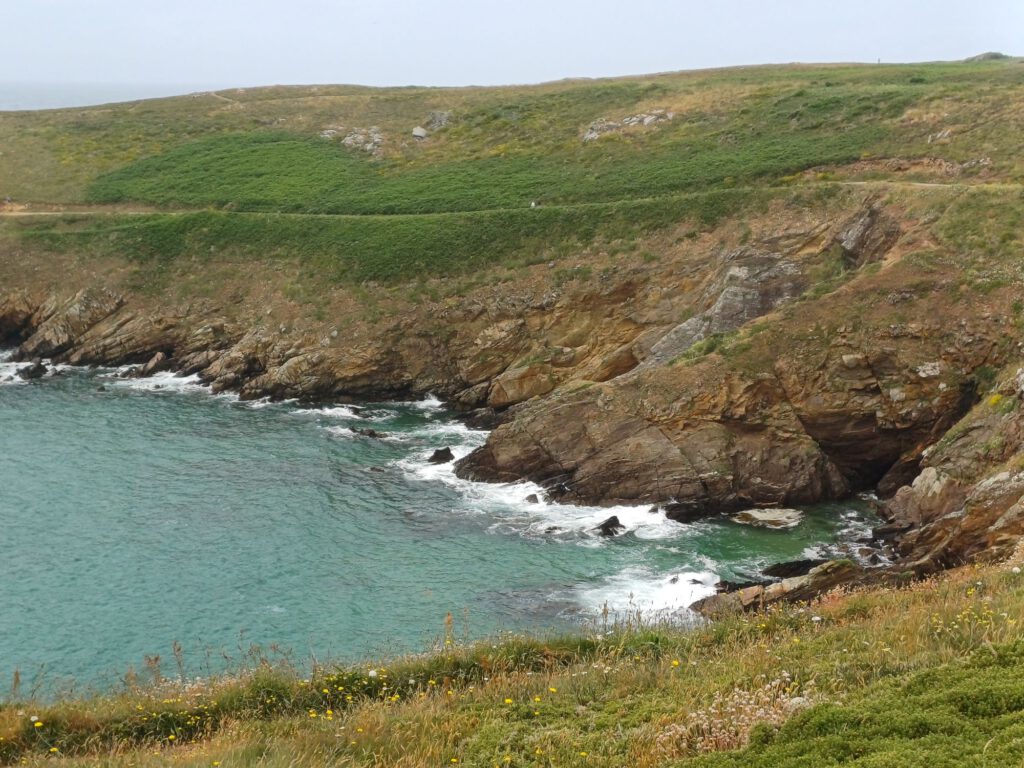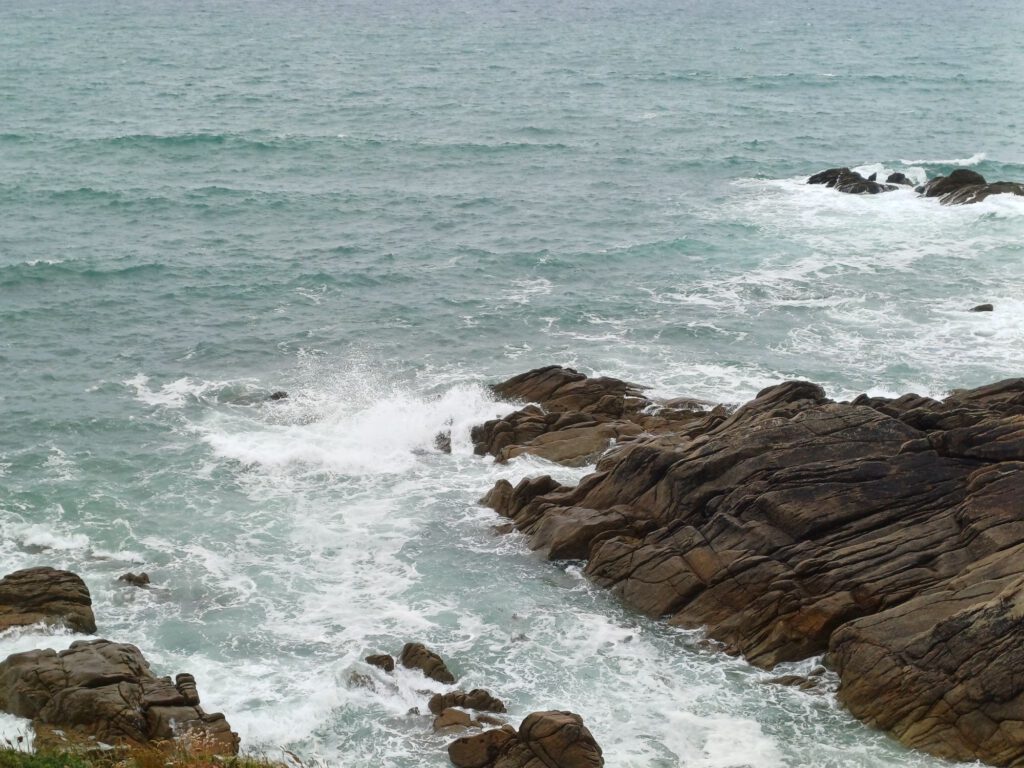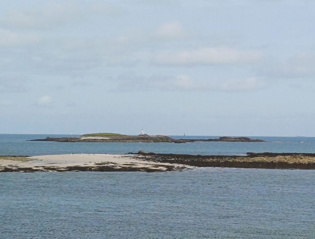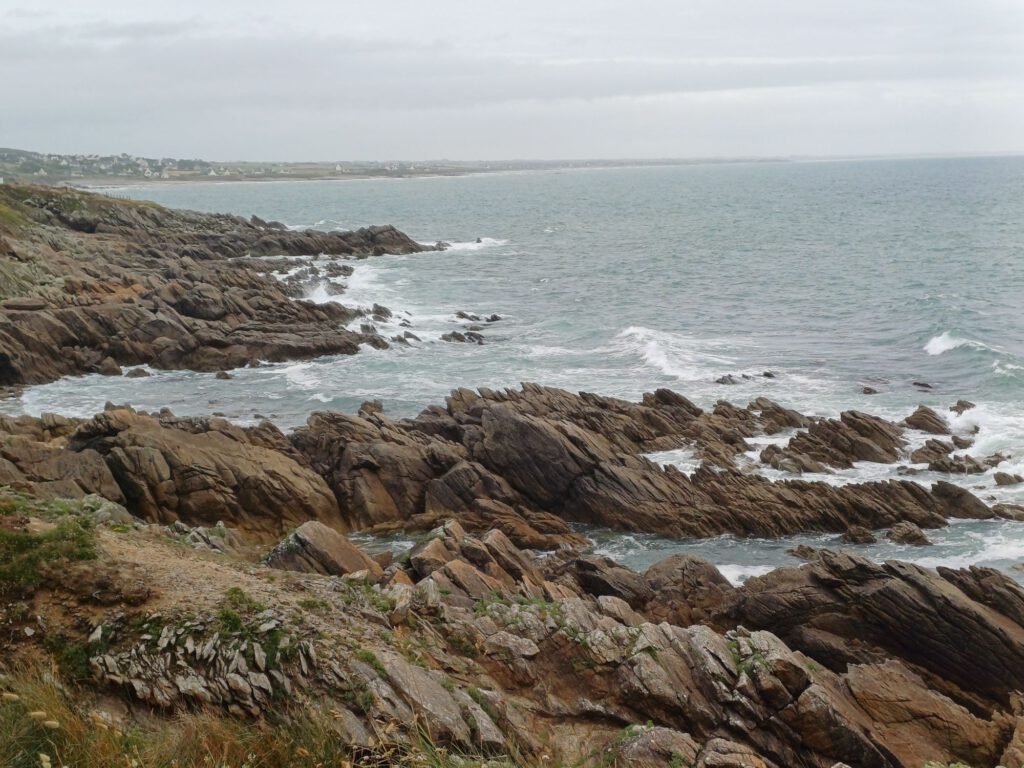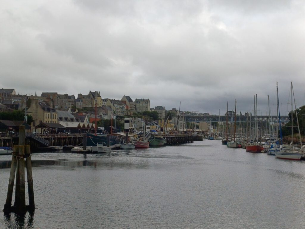 Nach einer relativ kurzen Nacht, bin ich um halb sieben aufgestanden. Ich habe mein geräumiges und sauberes „Badezimmer“ am Parkplatz genossen und dann mit der aufgehenden Sonne einen Spaziergang durchs Dorf gemacht. Zum Frühstück bin ich zu einem Picknickplatz auf halber Strecke nach Paimpol gefahren. Mittlerweile war es leider ziemlich zugezogen und entsprechend kühl. Als ich fertig und gerade dabei war, heißes Wasser für den Abwasch zu richten, kam ein Bauer mit seinem Traktor aufs benachbarte Feld gefahren. Er wirkte besorgt und fragte, ob ich mit Frühstück gerade anfange oder schon fertig sei. Als ich sagte, ich sei fertig, war er etwas erleichtert, er wollte nämlich Gülle fahren und das wäre beim Frühstück ja doch sehr unangenehm. Ich sagte, das sei kein Problem. Er hat dann trotzdem gewartet bis ich fast alles im Auto verstaut hatte und in der entferntesten Ecke des Feldes begonnen. Die Menschen sind hier wirklich so nett und hilfsbereit. Später am Tag hatte ich ein ähnliches Erlebnis mit dem Mitarbeiter der Kirche in Paimpol, der ruhig gewartet hat mit abschließen, bis ich meine Meditation beendet und noch ein paar Fotos gemacht hatte. Erst dann ist mir aufgefallen, dass er da wohl schon die ganze Zeit mit Motorradhelm auf dem Kopf gewartet hat. Als ich mich schuldbewusst rausgeschlichen habe, hat er mich freundlich angelächelt und mir einen schönen Tag gewünscht. Ansonsten war mir Paimpol zu voll und zu hektisch. Denn heute war Markttag. Und was für ein Markt! Da gab es wirklich alles und er war groß. Das erklärte die Menschenmassen. Er erstreckte sich über sämtliche Plätze der Altstadt und die meisten Straßen. Leider war dadurch kaum etwas von den Häusern aus dem überwiegend 15. Und 16. Jahrhundert zu sehen. Daher bin ich irgendwann auch in die Kirche geflüchtet, um meinem überreizten Nervensystem Ruhe zu gönnen.