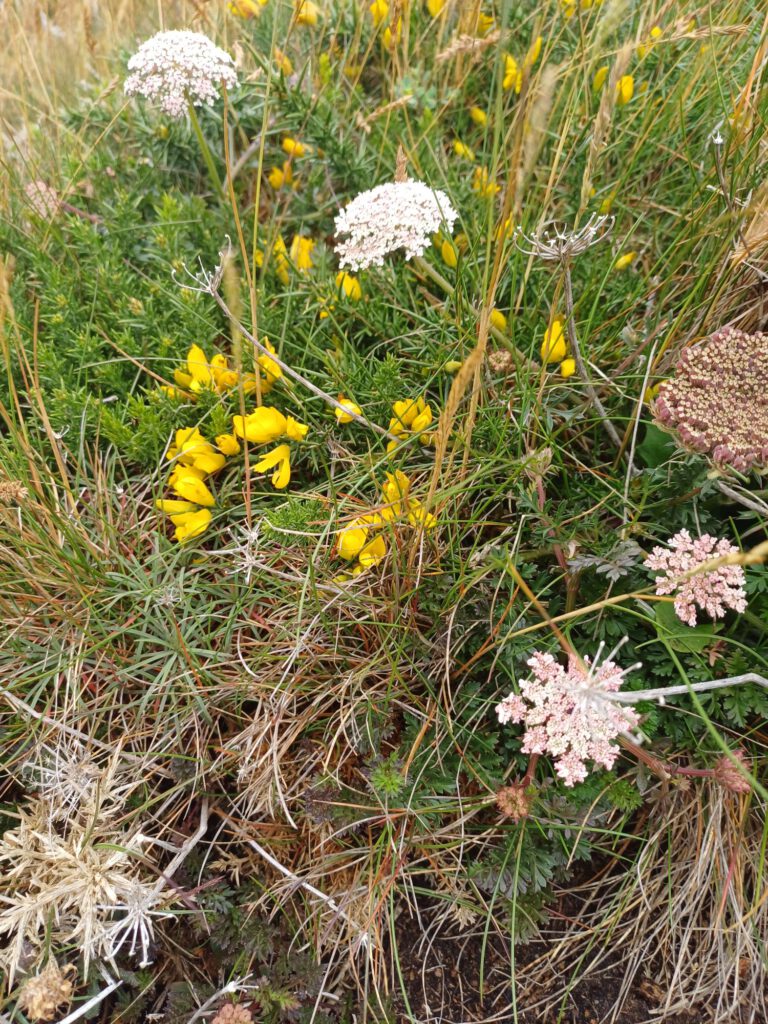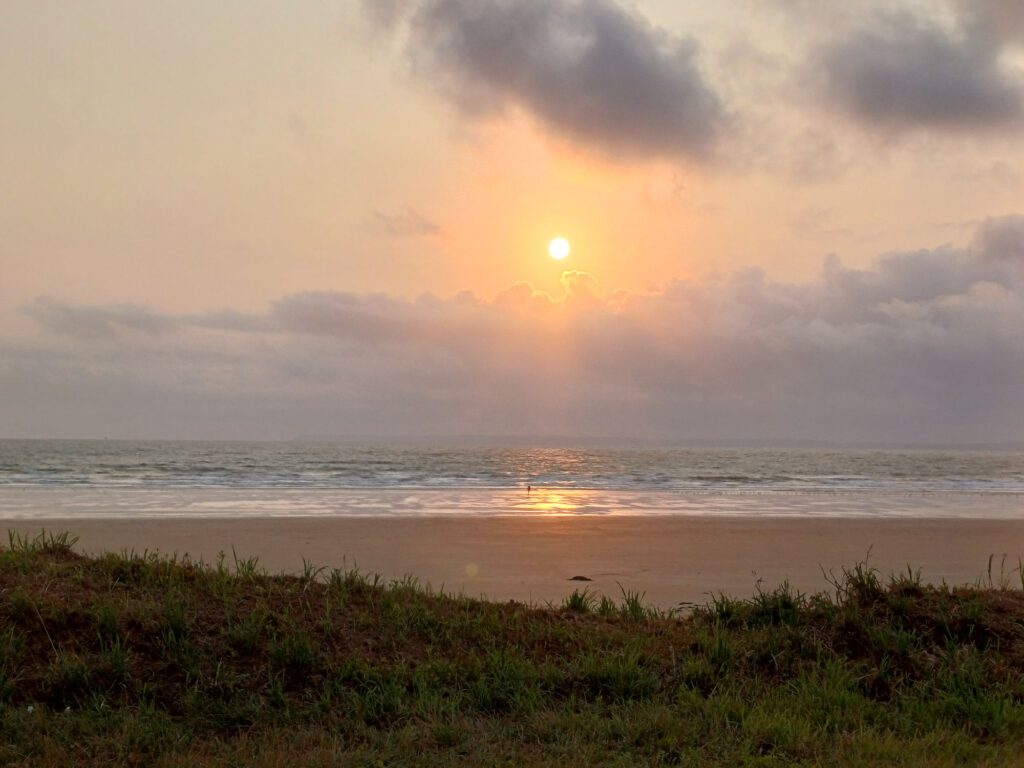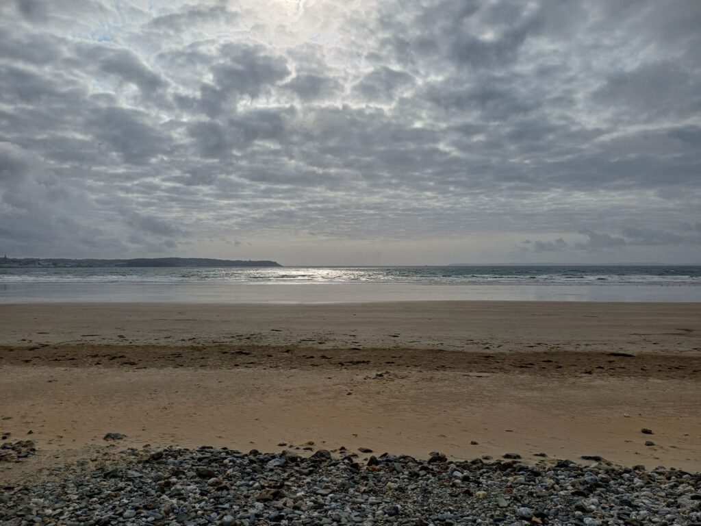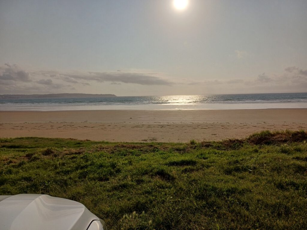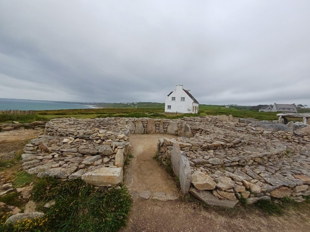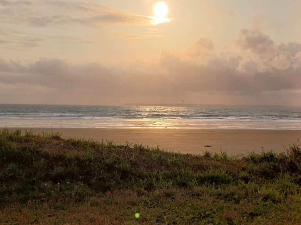 Nach einer relativ kurzen Nacht, bin ich um halb sieben aufgestanden. Ich habe mein geräumiges und sauberes „Badezimmer“ am Parkplatz genossen und dann mit der aufgehenden Sonne einen Spaziergang durchs Dorf gemacht. Zum Frühstück bin ich zu einem Picknickplatz auf halber Strecke nach Paimpol gefahren. Mittlerweile war es leider ziemlich zugezogen und entsprechend kühl. Als ich fertig und gerade dabei war, heißes Wasser für den Abwasch zu richten, kam ein Bauer mit seinem Traktor aufs benachbarte Feld gefahren. Er wirkte besorgt und fragte, ob ich mit Frühstück gerade anfange oder schon fertig sei. Als ich sagte, ich sei fertig, war er etwas erleichtert, er wollte nämlich Gülle fahren und das wäre beim Frühstück ja doch sehr unangenehm. Ich sagte, das sei kein Problem. Er hat dann trotzdem gewartet bis ich fast alles im Auto verstaut hatte und in der entferntesten Ecke des Feldes begonnen. Die Menschen sind hier wirklich so nett und hilfsbereit. Später am Tag hatte ich ein ähnliches Erlebnis mit dem Mitarbeiter der Kirche in Paimpol, der ruhig gewartet hat mit abschließen, bis ich meine Meditation beendet und noch ein paar Fotos gemacht hatte. Erst dann ist mir aufgefallen, dass er da wohl schon die ganze Zeit mit Motorradhelm auf dem Kopf gewartet hat. Als ich mich schuldbewusst rausgeschlichen habe, hat er mich freundlich angelächelt und mir einen schönen Tag gewünscht. Ansonsten war mir Paimpol zu voll und zu hektisch. Denn heute war Markttag. Und was für ein Markt! Da gab es wirklich alles und er war groß. Das erklärte die Menschenmassen. Er erstreckte sich über sämtliche Plätze der Altstadt und die meisten Straßen. Leider war dadurch kaum etwas von den Häusern aus dem überwiegend 15. Und 16. Jahrhundert zu sehen. Daher bin ich irgendwann auch in die Kirche geflüchtet, um meinem überreizten Nervensystem Ruhe zu gönnen.