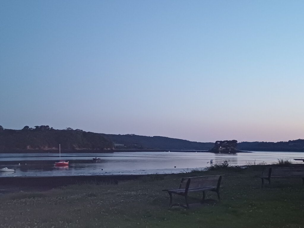 Einen guten Schlafplatz habe ich heute beim ersten Versuch nur 10 Minuten von Tréguier entfernt gefunden. Das war auch gut so, denn auch wenn es mir heute einen Tick besser ging (ich bin auch ohne Stöcke kein einziges Mal gestolpert und hatte kaum Schmerzen), war ich sehr erschöpft. Es ist ein kleiner Parkplatz in einem hübschen Dorf, den ich mir mit einem jungen Paar im Van teile. Er liegt direkt am Wasset, hat 2 Picmocktische und mehrere einzelne Bänke auf der Wiese am Ufer. Ich betrachtete beim Abendessen die untergehende Sonne und hatte nette Begegnungen mit Einheimischen und Hunden. Nur Netz gibt es hier kaum, weshalb es einige Bilder noch nicht hochlädt. Die kommen dann sobald ich wieder Netz habe.