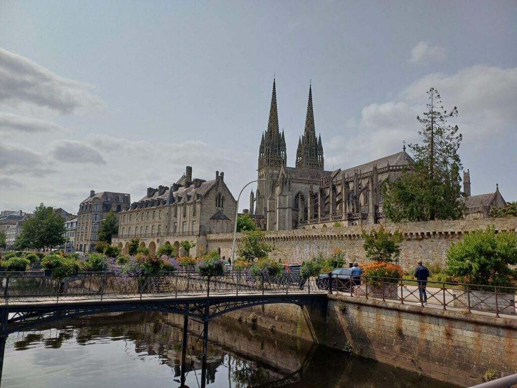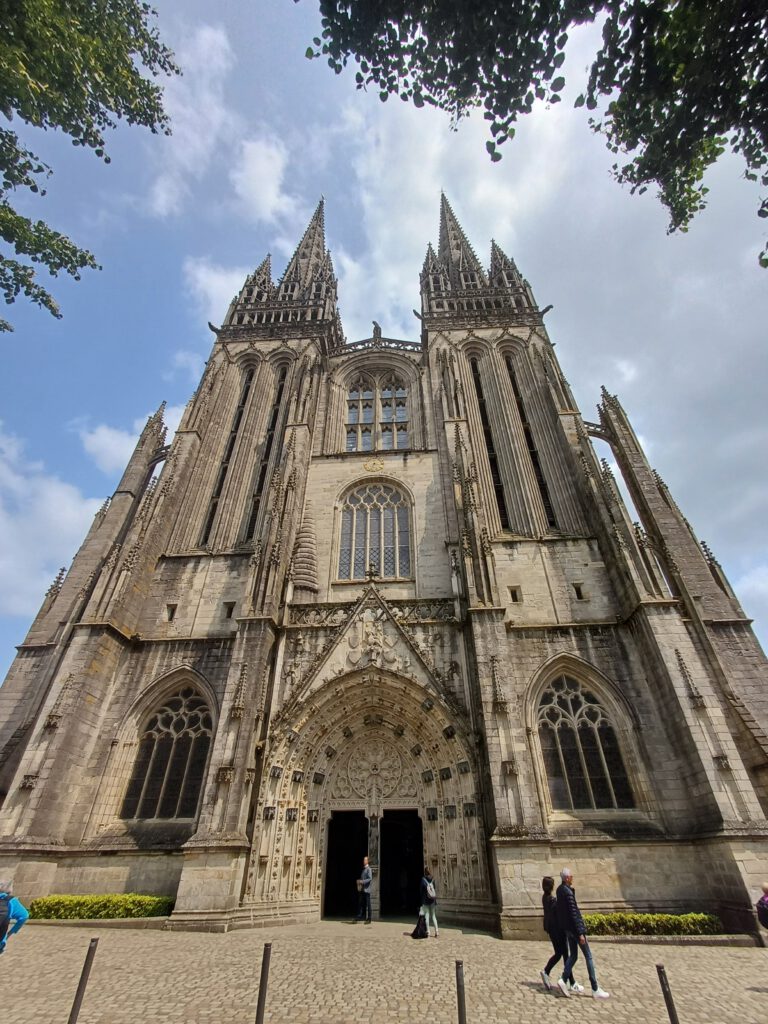 Und natürlich die Basilika St-Tugdual. Sie ist so riesig, dass sie nie ganz aufs Bild passte ;-). Sie stammt überwiegend aus dem 16. Jahrhundert. Ihre Geschichte geht auf eine Klostergründung im 6. Jahrhundert durch den Hl. Tugdual zurück. Es war das erste Kloster in dieser noch heidnischen Region nachdem die Bretonen hier gelandet waren. Vom ersten steinernen Kathedralenbau aus dem 11. und 12. Jahrhundert steht nur noch der quadratische Turm des nördlichen Querhauses (romanisch). Ab 1339 bis zur Mitte des 15. Jahrhunderts entstand die heutige Kathedrale (gotisch).